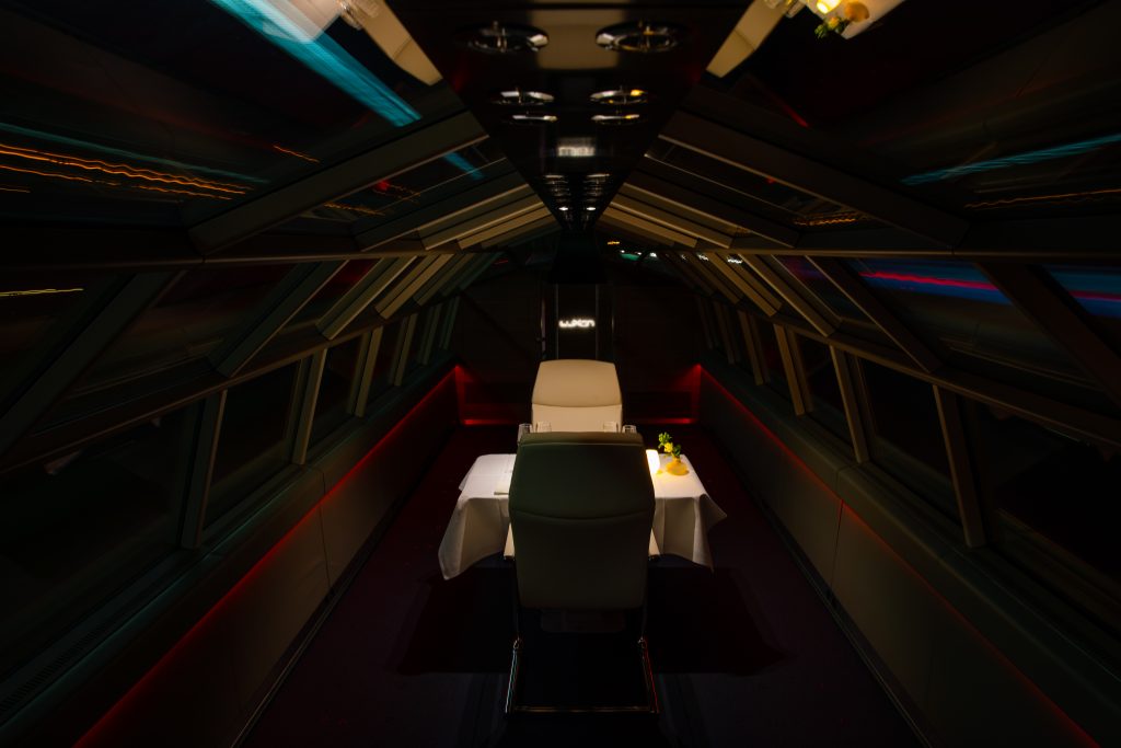 Bis auf die Hülle alles. In acht Jahren Umbauzeit wurde jedes Bauteil überprüft, erneuert oder ersetzt. Die Glasscheiben des Panoramadachs zum Beispiel sind Einzelteile – jede Scheibe ist ein Unikat, das passgenau angefertigt wurde. Im Innenbereich wurden Bar, Lounge und Küche geschaffen sowie die Möglichkeit der individuellen Möblierung des Panoramabereichs. Ausstattung und Elektrik sind neu und auf dem modernsten Stand.
